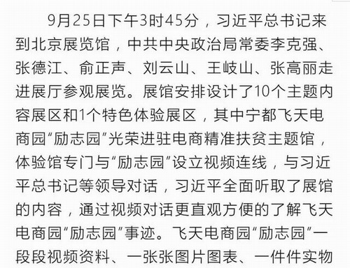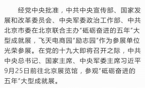 飞天电商园:习近平总书记参观“砥砺奋进的五年”大型成就展,飞天电商园“励志园”光荣参展