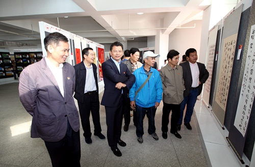 在举国上下热烈庆祝党的十九大胜利闭幕之际,在全国人民隆重纪念建军九十周年、井冈山革命根据地创建九十周年、秋收起义九十周年、香港回归祖国二十周年的日子里,10月26日上午,由校党委宣传部、校工会、离退休职工管理处、艺术学院、校老年文学艺术协会共同举办的九江学院第七届教职工金秋书法绘画摄影作品展在逸夫图书馆展览厅举行。在家校领导赵伟、刘晓东、魏立平、纪岗昌、王万山、陈春生、夏启国,党委宣传部、党办、工会、艺术学院以及相关部门负责人、师生代表参加了开展仪式。