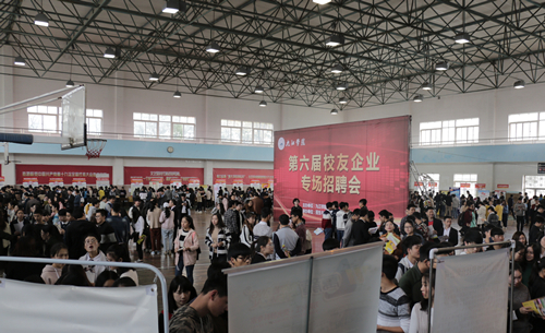 11月11日上午,我校第六届校友企业专场招聘会在南区体育训练馆召开,来自北京、上海、广东、浙江、江西及周边等地区的校友企业60余家参加此次招聘会,共提供约1200余个岗位。