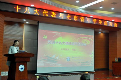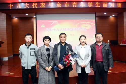 为深入学习宣传贯彻党的十九大精神,引导广大团员青年把思想统一到党的十九大精神上来,把力量凝聚到党的十九大作出的各项部署上来,11月14日晚,由团市委和校团委联合主办的“十九大代表与青年学生面对面”宣讲报告会在我校逸夫报告厅举行。党的十九大代表、九江电信公司向东班班长向东作了宣讲报告。校党委书记赵伟、校长刘晓东、校党委副书记魏立平会见了向东一行,报告会由团市委书记宋晓妤主持。我校团校学员和九江职业技术学院、九江职业大学、江西财经职业学院的青年代表共200余人一同聆听了报告。