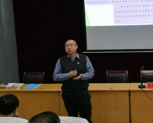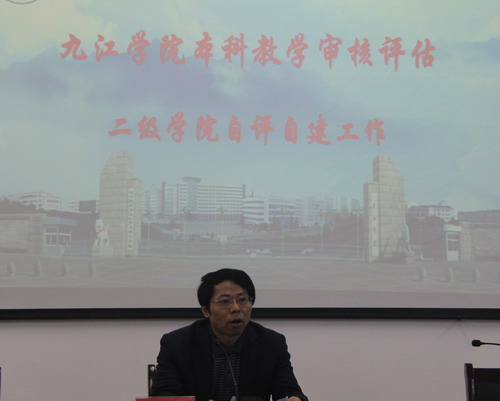 督查过程中,评建办常务副主任、教务处负责人陈小林就二级学院自评自建工作任务、工作目标、工作要求及自评报告当中的24个审核要素进行了全面的介绍和解读。