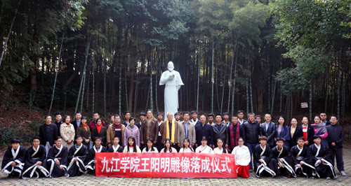 11月22日上午,王阳明雕像落成仪式在我校阳明山举行。江西省王阳明研究会名誉会长、省人大常委、环境与资源保护委员会副主任甘筱青,江西省王阳明研究会秘书长、九江绿地大都会董事长皇甫金石,我校校长刘晓东参加了落成仪式。九江学院图书馆、校团委有关负责人,首届《乾坤儒学》企业家研修班师生代表,阳明心学传习者代表,九江学院国学社大学生代表等百余人共同见证了落成仪式。