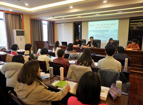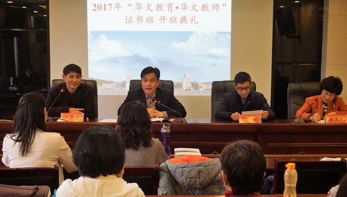 12月4日上午,由国务院侨办主办、我校承办的“2017华文教育•华文教师证书班”活动在学校濂溪酒店二楼会议室正式开班。副校长杨耀防出席了仪式并致辞,开班仪式由学校国际处副处长王贤淼主持。我校授课教师代表及来自马来西亚,澳大利亚,新加坡,英国等国的华文教师参加了开班仪式。
