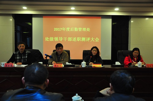 在听取了后勤管理处党政领导班子工作汇报及各位处级干部的述职汇报后,夏启国副校长对后勤管理处一年来的工作和取得的成绩表示肯定,认为后勤管理处领导班子是团结有战斗力、思路清晰的班子,后勤管理处职工的精神面貌非常好、执行力强,是特别能吃苦、特别能战斗、特别能奉献。夏副校长还对后勤管理处今后的工作提了三点要求:一、在学校党委和行政的领导下,在全体干部职工的努力下,紧紧围绕学校中心工作,遵循后勤工作的规律,夯实基础,保质保量的做好各项后勤服务保障工作;二、加强队伍建设、强化技能培训、立足现在、谋划长远,进一步提高后勤服务质量;三、和谐共事、廉洁谋事、勤奋干事,用辛勤的工作,为全校师生员工提供优质服务。