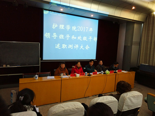 1月9日上午,护理学院分别在浔东校区立本楼三楼报告厅和一号会议室召开了2017年度院领导班子述职测评大会和党委民主生活会。校党委委员、副校长杨耀防到会讲话。组织人事部副部长周敏和户晗老师参加了会议。