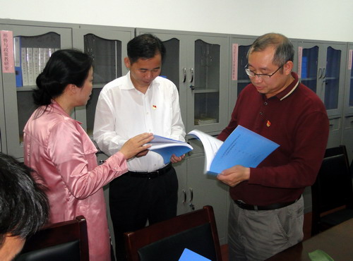 汇报会结束后,赵书记率专家组成员随机抽取并认真查阅了培养方案、教学大纲、试卷等具体材料。经仔细查阅,专家对试卷的内容、试卷成绩及分析等方面发现的问题依次进行记录并提出具体意见和建议。