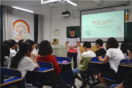 高翔书记对本次活动进行了总结。他充分肯定了本次主题团日活动的意义:一是分享,通过大家发言,同学们分享了对母爱的感悟和大学学习生活中成长的喜悦,从而让同学们更深刻地理解在自己人生道路上母爱的伟大;二是传承,同学们分享母爱与感恩的同时,也是不断地传承中华民族优秀文化传统。A1611班是个优秀班级,同学们要在践行社会主义核心价值观和即将开展的“红色家书颂读”活动中充分展示政法学子应有的风采。