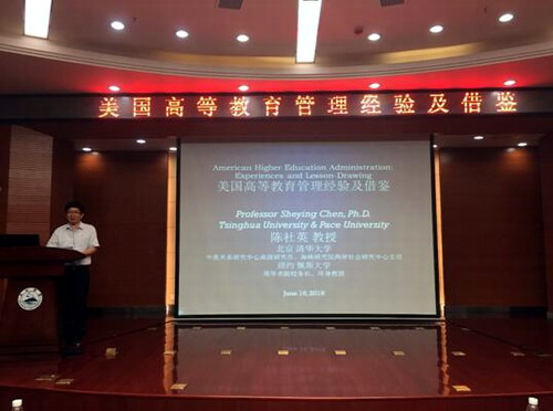 6月16日晚,清华大学中美关系研究中心高级研究员、社会工作研究中心主任,美国佩斯大学原学术副校长陈社英教授应邀来校讲学,以“美国高等教育管理经验及借鉴”为题在校逸夫图书馆报告厅作了专题报告。王万山副校长主持报告会,来自学校各个二级学院的师生员工130多人聆听了报告。