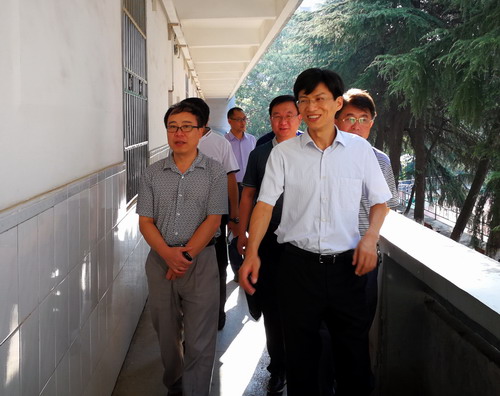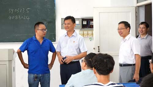 9月3日,是我校老生正式开课的第一天,早上7点50分,校领导赵伟、刘晓东、魏立平、纪岗昌、王万山、陈春生、杨耀防、夏启国、查振华、李广欣在教务处和各二级学院负责人的陪同下,深入到各校区的各栋教学楼和教学点检查开学第一课情况。