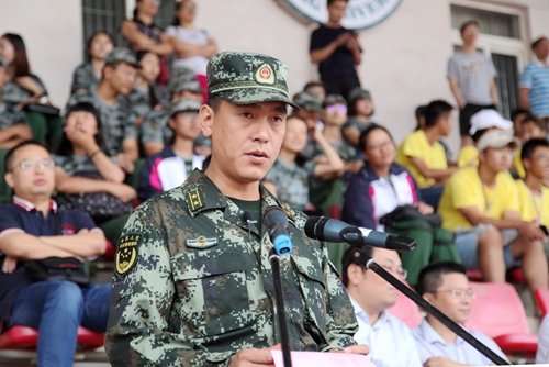 武警九江支队副参谋长、军训旅旅长甘露宣布军训会操获奖名单,学生处长、军训旅政委刘平宣布了军训内务评比结果。