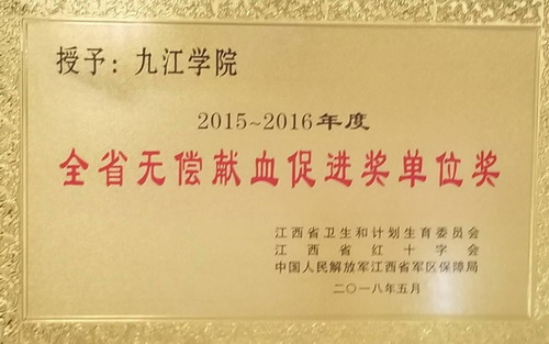 近日,江西省卫生和计划生育委员会、江西省红十字会、中国人民解放军江西省军分区后勤部颁布了赣卫医字〈2018〉104号文件,对无偿献血工作中取得突出成绩的单位和个人予以表彰,我校被授予“全省无偿献血先进集体”荣誉称号。