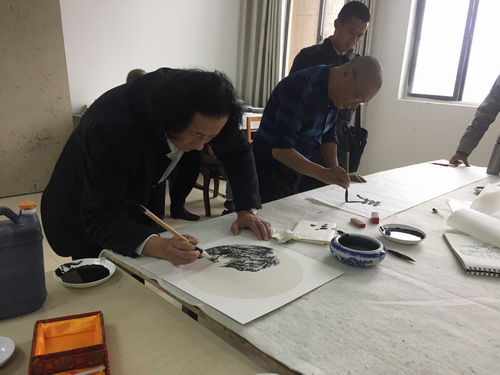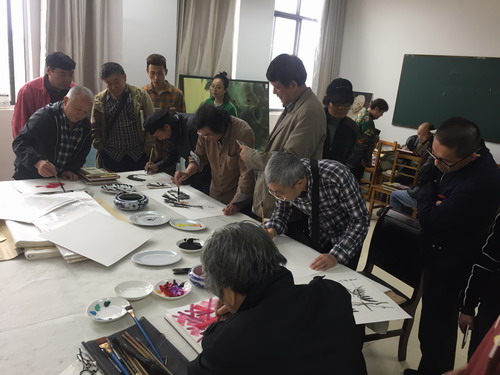 下午,77、78级校友交流笔会在艺术学院国画临摹实验室举行。书画笔会上,各位校友进行书画交流,挥笔泼墨,借诗言志,表达纪念改革开放40周年,喜迎中国特色社会主义新时代的激动之情。