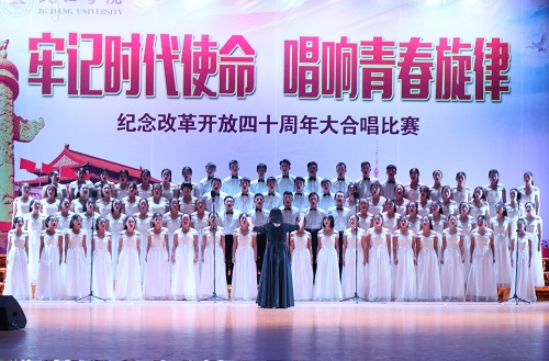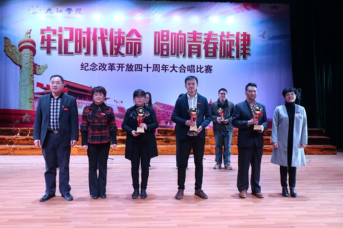 歌唱祖国,歌唱新时代。11月6日晚,校大礼堂传出阵阵歌声,时而慷慨激昂,时而温柔深情。九江学院“牢记时代使命 唱响青春旋律”纪念改革开放40周年合唱比赛在此隆重举行,用歌声赞美改革开放40年来取得的辉煌成就,展示九院学子的风采。全校19个学院全部参加了比赛,共有10支队伍进入决赛。副校长王万山、陈春生出席活动。有关职能部门负责人、各二级学院党委书记和学生1100余人观看了比赛。