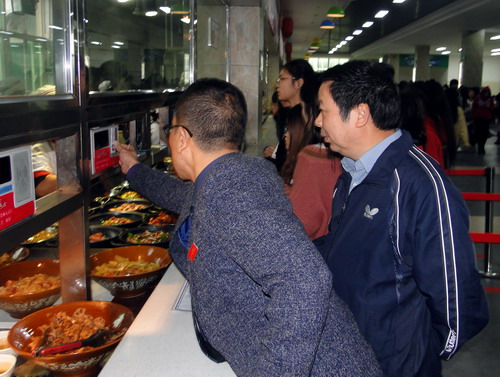 9、中午,专家组组长朱林生教授到学生三食堂和学生一起用餐。