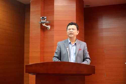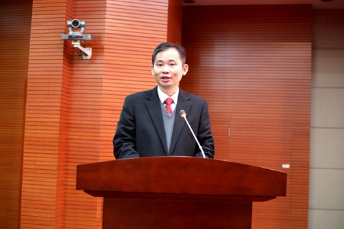 科研处处长王侃民做了2019年国家级科研项目申报动员报告。化环学院彭游博士和旅游学院孙冬英副院长分别代表学院交流了科研工作经验。经管学院张应华博士、理学院李进博士分别就申报国家级科研项目的经验体会做了大会交流。