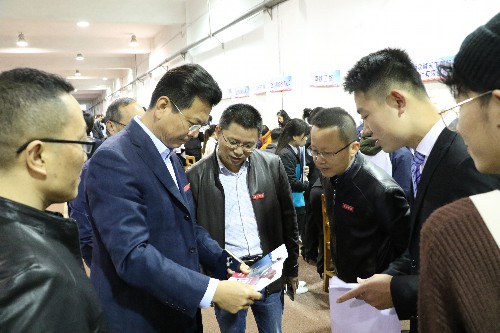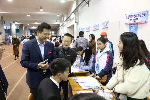在招聘会现场,校领导与用人单位代表、毕业生代表进行了亲切交谈,详细了解了用人单位提供的岗位、资薪、待遇、环境等信息;详细询问了毕业生的求职意向和应聘情况。