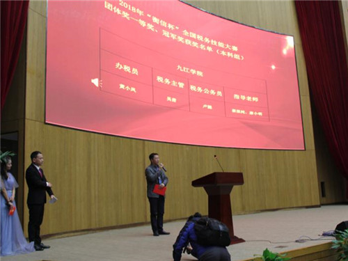 在颁奖典礼上,罗维就九江学院会计学院学生专业技能竞赛团队建设情况进行了经验介绍。“衡信杯”全国税务技能大赛由中国商业会计学会主办,由“税友衡信集团”提供技术支持。经过海选赛、省赛的层层选拔,来自全国各地的144支代表队(本专科各72所学校)进入决赛环节。决赛分为三个岗位:办税员、税务主管和税务公务员,综合考核了学生财税职业素养、纳税申报和税收风险管控能力。大赛以独特创新的随机分岗模式,让各岗位相互协作来完成比赛,全面考察了选手税务实操技能的同时还锻炼了学生的团队协作能力,全真模拟企业岗位业务环境,真正做到了理论和实际结合。