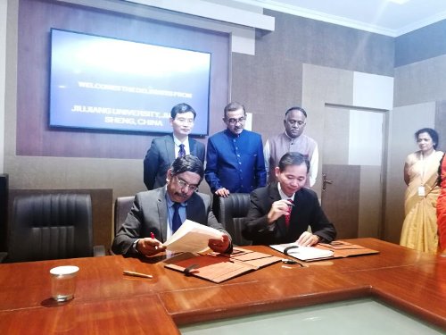 在印度期间,赵伟书记一行访问了萨奇亚巴马科学与技术学院。萨奇亚巴马科学与技术学院校长S. Sundar Manoharan 等学校领导热情接待了代表团。双方在互相介绍了解的基础上,对比相同相近的学科与专业,并就可以合作领域进行了深入交流,签署了合作备忘录,为两校在人才培养、学科与专业建设、教师访学交流等方面的深入合作奠定了基础。