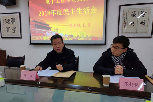 述职测评会议后,电子工程学院召开了2018年度党委民主生活会。校党委委员、宣传部部长冯健、组织人事部职称科科长张杨帆、电子工程学院党委班子成员参加了此次会议,会议由党委书记孙小明主持。