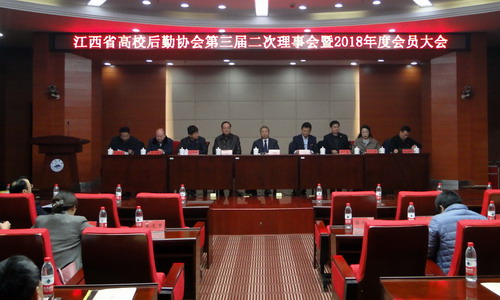 1月12日,江西省高校后勤协会(以下简称“省协会”) 第三届二次理事会暨2018年度会员大会在九江学院顺利召开。中国教育后勤协会会长程天权、中国教育后勤协会专家委员会副主席成冠润,江南大学副校长田备,沈阳大学副校长刘克斌,江西省社联领导许芦峰、江西省教育厅学校后勤与产业办公室正处级干部胡若峰等出席会议。校党委书记赵伟在会议间歇会见了与会各位代表和嘉宾,校长刘晓东教授出席开幕式并致辞,副校长夏启国全程参加了会议并听取了报告讲座。江西省高校后勤协会60多个会员单位及各高校代表130余人参加了会议。会议由江西省高校后勤协会会长汤颖松主持。