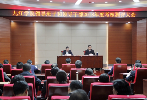 赵伟代表学校领导班子作2018年度工作报告,并报告了领导班子和本人落实党风廉政建设责任制以及本人廉洁自律情况、报告领导班子履行意识形态工作主体责任和本人履行意识形态工作“第一责任人”职责情况。他指出,2018年,在省委、省政府和省委教育工委、省教育厅的正确领导下,在九江市委、市政府的大力支持下,学校党委充分发挥领导核心作用,团结带领广大教职工,以习近平新时代中国特色社会主义思想为指导,深入学习贯彻党的十九大、全国教育大会和新时代全国高等学校本科教育工作会议精神,深入推进全面从严治党,全面落实立德树人根本任务,各项工作取得新成绩。