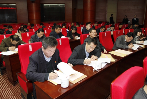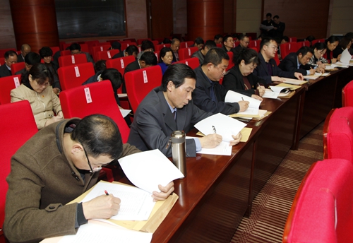 根据省委的统一部署,3月28日上午,我校在逸夫图书馆学术报告厅召开学校领导班子和领导干部2018年度考核测评大会。省委第一考核组组长、省委组织部常务副部长徐南凯同志;考核组副组长、省委组织部干部四处处长梁文懋同志;考核组成员、省纪委省监委机关纪委专职副书记苏东来同志;省委组织部办公室副主任幸珍宁同志;省委组织部干部四处副处级干部刘建光同志;省委组织部干部监督处主任科员王磊同志;省教育厅高教处(科技处)主任科员王允同志;省纪委省监委案件监督管理室副主任科员赵钢钥同志等8名考核组成员到会指导。校党委书记赵伟主持大会。学校领导班子成员、中层正职、部分正高职称人员、教职工代表120余人参加了考核测评大会。