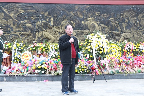 上午9时40分,祭英烈仪式正式开始。在一片肃穆中,国旗班标兵肃立两侧。全体人员齐唱国歌。学生代表恭读祭文,两名礼兵抬着花篮,迈着整齐的礼步缓缓向前,将花篮摆放到纪念碑基座前。团市委书记宋晓妤、副书记周丽敏整理挽联,全体向烈士纪念碑鞠躬默哀。大家神情凝重,深切缅怀为民族独立、人民解放和国家富强、人民幸福做出巨大贡献和牺牲的革命英烈,向历史致敬,向英雄致敬。