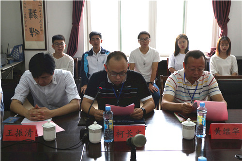 实验中心主任方向明代表组委会汇报赛事准备情况。团委书记闫来英代表评审委员会介绍评审筹备工作情况。评委代表柯长文作表态发言。