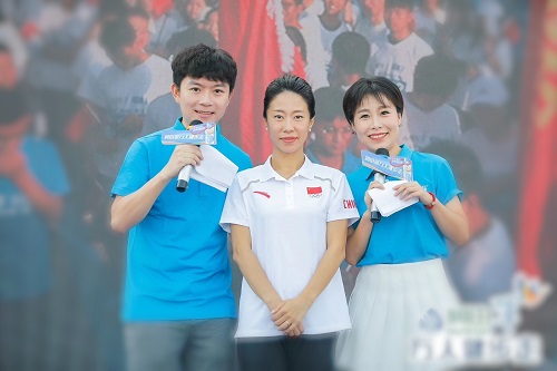 早上六点半,选手们就来到现场签到检录,蓄势待发。都市频道当家主持岩妍、胡帅现场主持。奥运冠军、中国花样滑冰协会主席申雪现场为活动助威,她亲切地与学生互动,将不懈努力的拼搏精神带给九院学生,鼓励大学生们在追梦路上砥砺奋斗。活动在全场挥舞国旗高唱《我和我的祖国》的歌声中拉开帷幕。