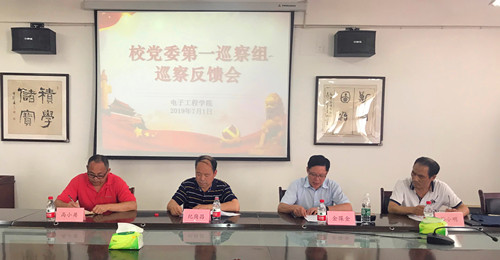 金葆金代表第一巡察组作了反馈,肯定了机材学院和电子工程学院在党的建设和教育教学等各项工作中取得的成绩,同时也指出了工作中存在的问题和不足,并从切实加强党的领导、严肃党内政治生活、增强管党治党意识、增强责任担当等四个方面提出了整改的意见和建议。