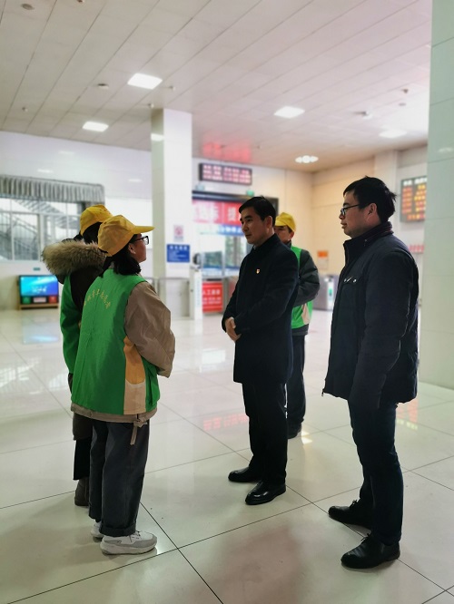 魏立平听取了九江车务段负责同志对暖冬行动情况的介绍,并来到售票厅、进站口、咨询台、候车室等志愿者服务区域,与我校春运志愿者亲切交谈,全面详细了解志愿者在售票指引、安检引导、旅客疏导等志愿服务岗位上的工作情况。魏立平亲切问候我校大学生志愿者,向他们致以新春祝福,赞扬他们放弃假期发扬奉献、友爱、互助、进步的志愿者精神助力春运,为旅客出行提供细致入微的温暖服务,也为九院学子赢得良好社会声誉。他希望志愿者们弘扬九江学院服务社会的优良传统,展示时代新人形象,树立九江文明标杆,在服务旅客过程中受教育、长才干、作贡献。他还叮嘱同学们在确保服务质量的同时注意安全,要求校团委加强和有关部门的协作,不断健全志愿者工作保障机制,保障“暖冬行动”青年志愿者有序、平安、快乐地参与志愿服务。