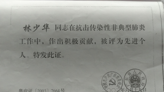 2003年非典疫情爆发时,林少华在非典重灾区的广东省江门市中心医院工作,在24小时内指挥抢建出非典隔离病区,成为当时广东省样板式的发热门诊,创造了当时受感染的病人和医务人员无一例感染的佳绩。其中因为隔离措施设计规范,将已受感染的一名孕妇在隔离病房内成功分娩,最终母女平安,婴儿健康未感染。为纪念此事,女婴小名取为"非非",现已17岁。林少华为抗击非典工作作出了积极贡献,受到广东省政府和江门市政府的表彰,获评抗击非典先进个人。