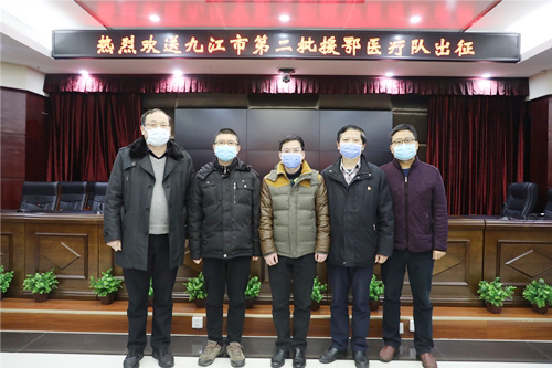 九江学院附属医院党委书记张南华,党委副书记、副院长殷小平,副院长李晓华等前往市卫健委为他们送行,给他们加油打气,并祝他们顺利凯旋。