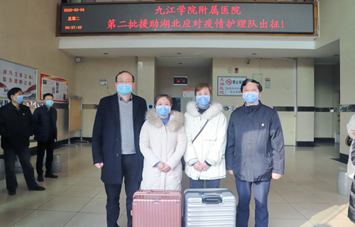 2月4日上午,九江学院附属医院2名护理人员启程至市卫健委集合,即将赶赴武汉援鄂抗疫一线。这是继1月26日后,九江学院附属医院派出的第二批援鄂医疗支援队伍。九江学院附属医院党政班子成员及各科室代表,为出征的白衣战士送行。