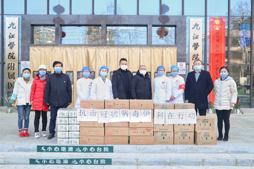九江学院附属医院领导班子对爱心企业表示由衷感谢。“新型冠状病毒感染的肺炎疫情牵动每个人的心,收到这些暖心的防护用品,我们真的很感动,感谢大家的理解支持。”附属医院党委副书记、副院长殷小平说。