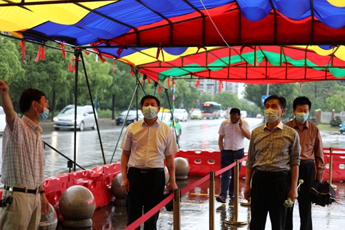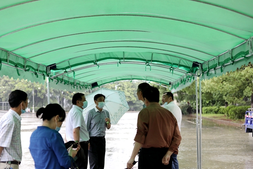 杨耀防一行重点查看了主校区西大门报到现场、核酸检测临时隔离点、学生三食堂等场所的设备、物资准备情况,对学生返校复学报到过程中可能出现的临时状况反复推演,确认解决方案。
