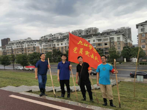 在抗洪救灾的紧要关头,九江学院广大师生主动请缨加入“党员突击队”“防汛抗洪突击队”,面对严峻汛情,大学生江亲龙誓言“洪水一天不退,我就一天不撤退”,他们毫无畏惧、冲锋在前,坚定守卫人民群众的生命和财产安全;