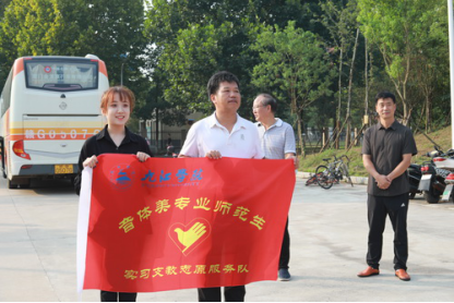 副校长陈春生为支教志愿服务队授旗