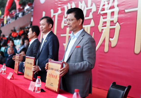 校党委书记赵伟为公体组男子4×100接力赛获奖同学颁奖