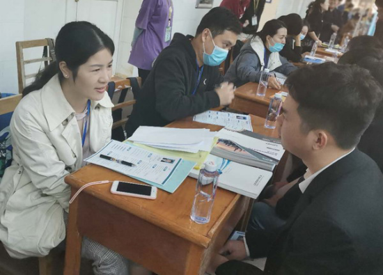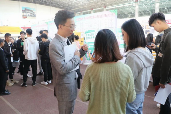 在招聘会现场,校领导还与用人单位代表、毕业生代表进行了亲切交谈,和返校招聘的校友进行了逐一交流。