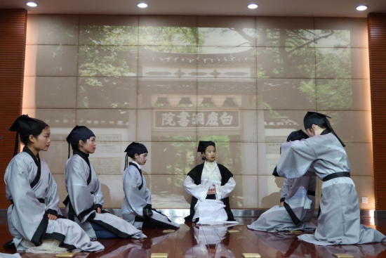 下午,举行了学生会讲暨表演活动。活动在两校学子齐诵《长江黄河》中拉开序幕。会讲中,两校同学围绕主题,从河洛文化溯源到书院文化传承,从长江之畔楼阁诗词中的情思再到两河文脉的传承,通过视频、图片、讲述的方式,向两河文明与书院文化致敬。郑州大学历史学院国学系教授魏涛与我校庐山文化研究中心副教授曹欢荣对两校学子的会讲进行了点评。
