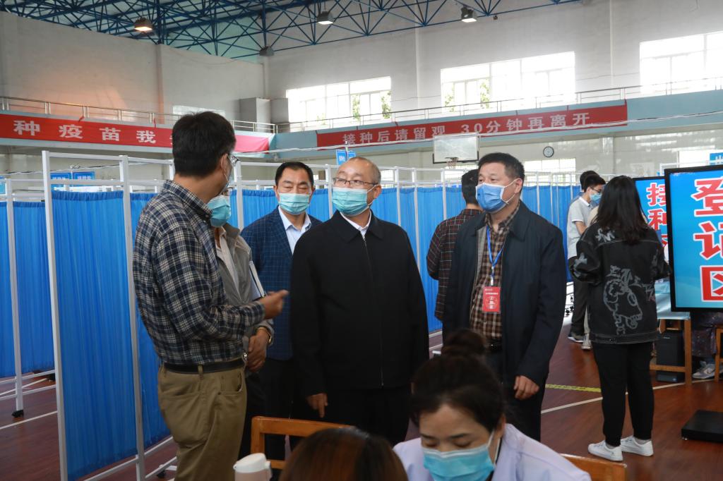 5月17日,校党委书记赵伟和校长陈小林来到主校区南区田径馆,现场检查指导我校新冠疫苗接种工作。