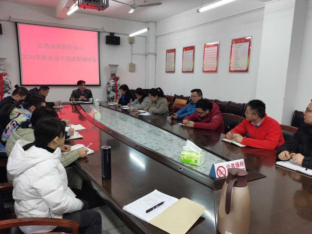 1月5日上午,副校长杨耀防在组织部工作人员的陪同下参加油茶中心2021年度处级干部述职测评会。油茶中心领导班子、全体教职工参会。