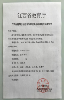 学院积极申报国家级、省级一流课程和教学改革等项目。2021年《机械制图》已通过江西省一流本科课程认定,《材料科学基础Ⅱ》等3门课程荣获校级一流本科课程建设立项,材料成型专业教学团队获批江西省高水平本科教学团队建设立项,教学改革研究项目成绩斐然,荣获江西省教学改革重点课题1项,一般课题1项,由我院教师杜大明、李养良参与的《应用型本科机械类人才核心能力培养“1+3”模式探索与实践》荣获江西省教学成果一等奖。