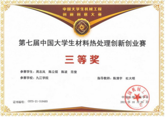 学院积极鼓励学生参加各类学科竞赛,荣获2021年中国大学生工程实践与创新能力大赛银奖1项;第六届江西省大学生工程训练综合能力竞赛金奖1项、银奖2项、铜奖1项;中国大学生材料热处理创新创业赛三等奖1项;第五届全国大学生焊接创新大赛二等奖2项、三等奖1项;2021年江西省先进成图大赛二等奖1项;获得第十届全国大学生金相技能大赛二等奖1项、3等奖1项;第五届江西省大学生金相技能大赛一等奖1项、3等奖5项。