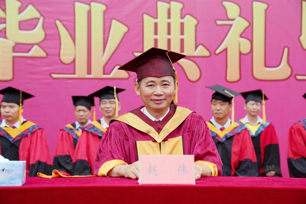 “作为九院的一名教师,在此我想向各位同学提三点建议,并与各位同学共勉:一是愿你们做一位身心健康的人;二是愿你们做一位爱学习﹑爱国家的人;三是愿你们做一位具有高尚品德的的人。今天,天空作美,送大家一场及时雨,愿它能洗去各位学子以往所有的烦恼,雨后带给大家一生的好运。也愿各位同学做一位身心健康,爱学习,爱国家,一个堂堂正正的中国人。”教师代表、药生学院副院长张化浩博士用心声勉励毕业生不忘初心,砥砺前行。