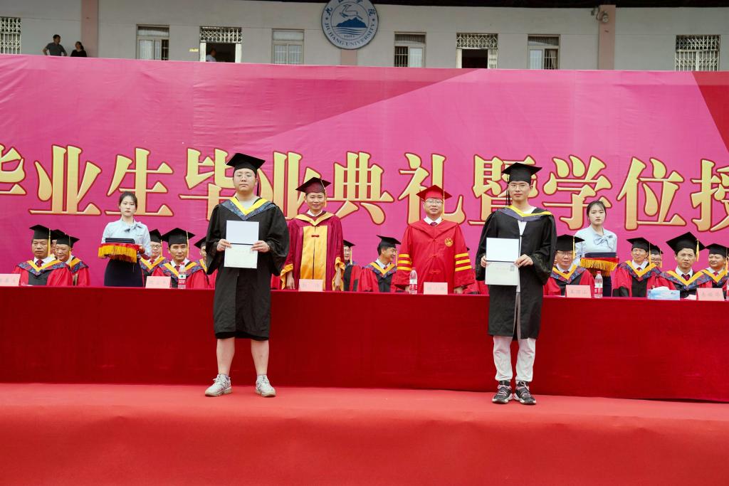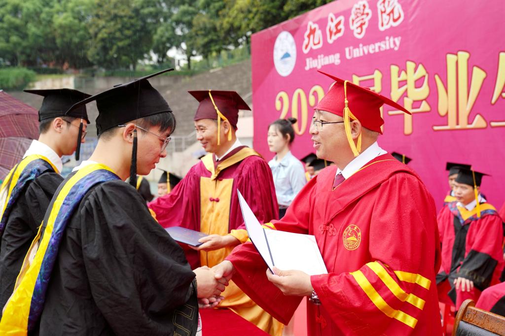 在学位授予仪式上,校党委书记赵伟、校长陈小林等校领导为毕业生代表颁发毕业证书,校学位评定委员会委员走到毕业生中间,为九院学子一一拨穗正冠,祝愿他们前程似锦、鹏程万里。