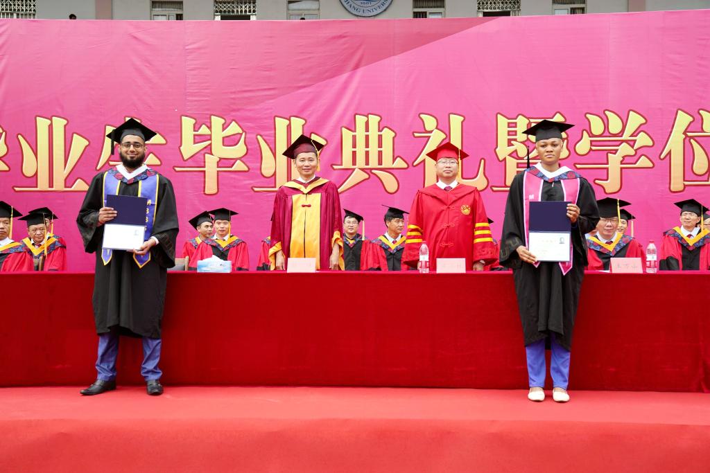 毕业典礼在高昂的国歌声中拉开帷幕。