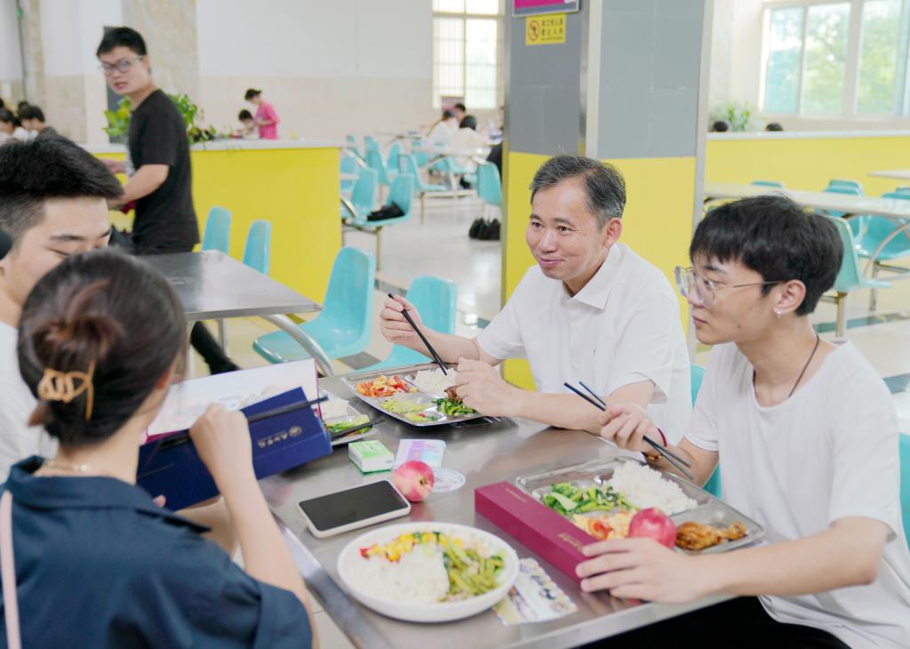 毕业典礼结束后,学校在主校区一食堂和三食堂、浔东校区食堂准备了定制午餐和毕业礼物,为2022届全体毕业生送别,让毕业学子再一次感受九院味道。赵伟、陈小林等校院领导分别来到学生三食堂和一食堂,与同学们共进午餐,一起回忆大学时光,畅想美好未来。