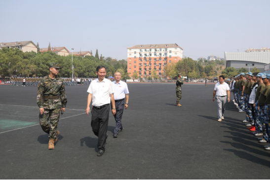 9月29日上午,校党委书记赵伟、校长陈小林来到主校区丹枫园军训场看望慰问正在军训的我校2022级新生、教官和教职工。